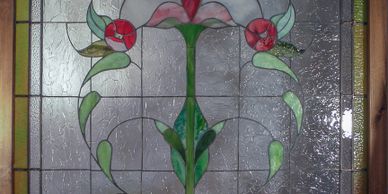 Victorian Rose window was designed to provide privacy in a bedroom. Clear textured glasses block view, but permits maximum light inside.