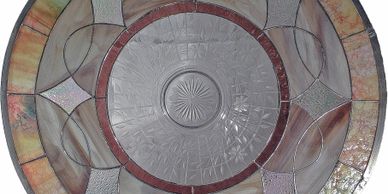 Given the base dimension & radius and a concept a drawing is completed and sent for approval. Then the glass is cut, laid onto the pattern for approval. Suggested changes desired are incorporated.